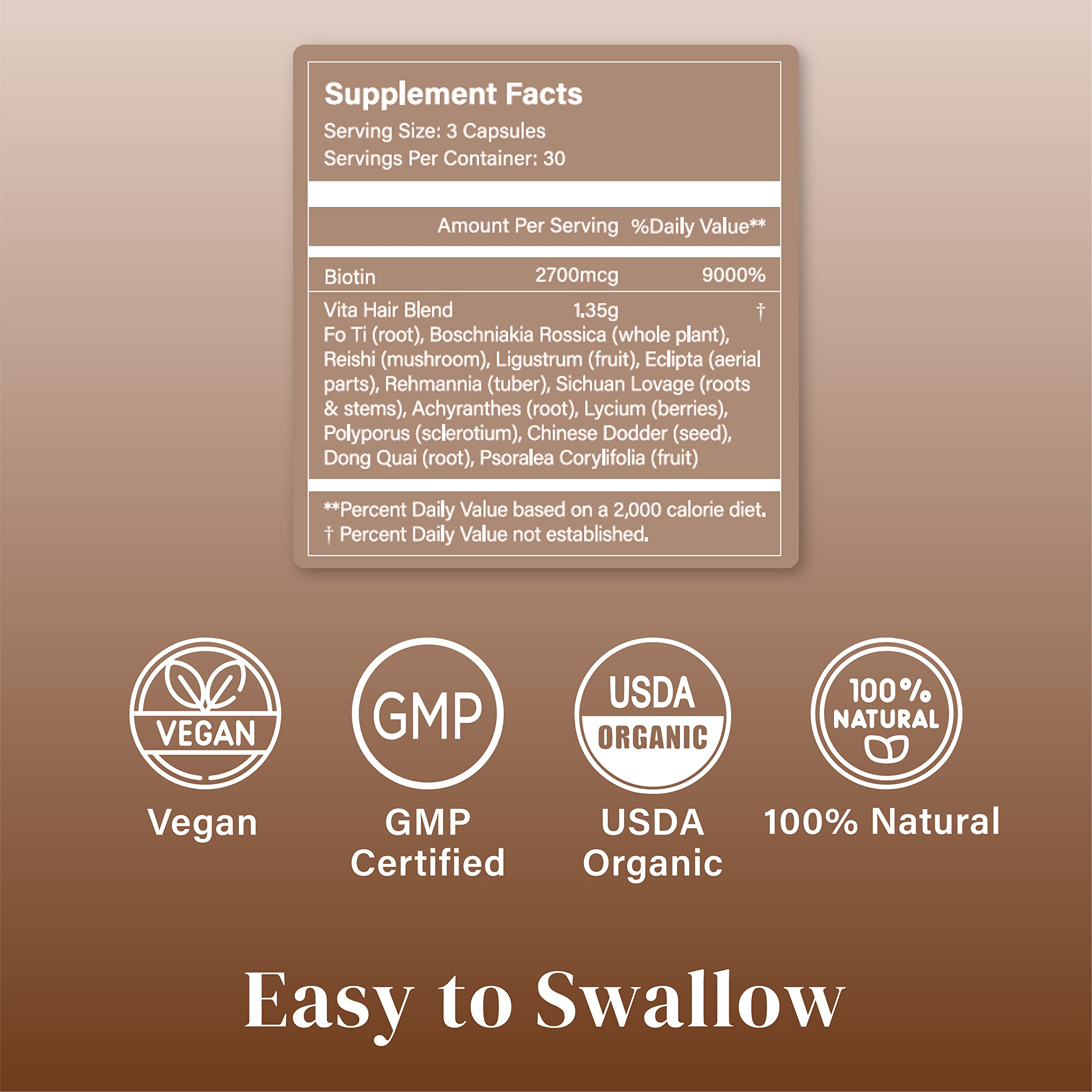 Amazon Com Vita Hair Growth Hair Loss 100 Natural Herbs Potent Formula For Greying Thinning Hair Stimulate New Hair Follicles Supplement For Men Women 270 Capsules 90 Capsules X 3 Bottles