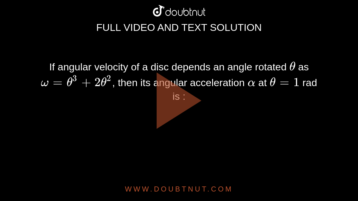 If Angular Velocity Of A Disc Depends An Angle Rotated Theta As Omega Theta 2 2theta Then Its Angular Acceleration Alpha At Theta 1 Rad Is