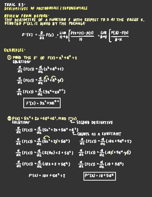 Compilation Of Notes For Calc 1 Topic 3 Derivatives Of Polynomials I Cxoonentials Review From Studocu