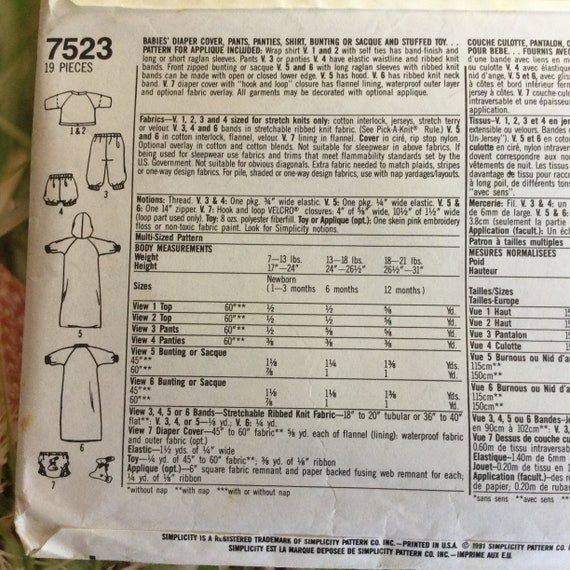 Simplicity 7523 Sewing Patterns Uncut Baby Diaper Cover Etsy